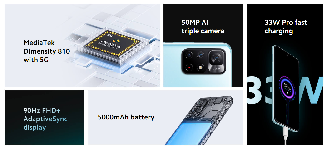 With the 5000mAh battery and MediaTek 5G UltraSave power-saving technology, the Redmi Note 11S 5G has lower power consumption and a longer battery life, so that you can watch videos, listen to music and play games as long as you want.
