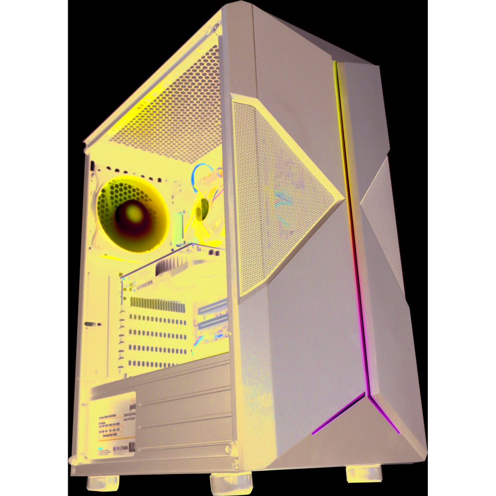 1:The main image is a stock photo provided by the manufacturer to demonstrate the appearance of the PC case.  If purchased without a graphics card or onboard graphics, please do not expect to receive one as shown in the picture. Feel free to contact us with any questions.